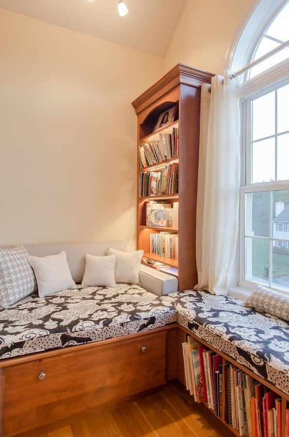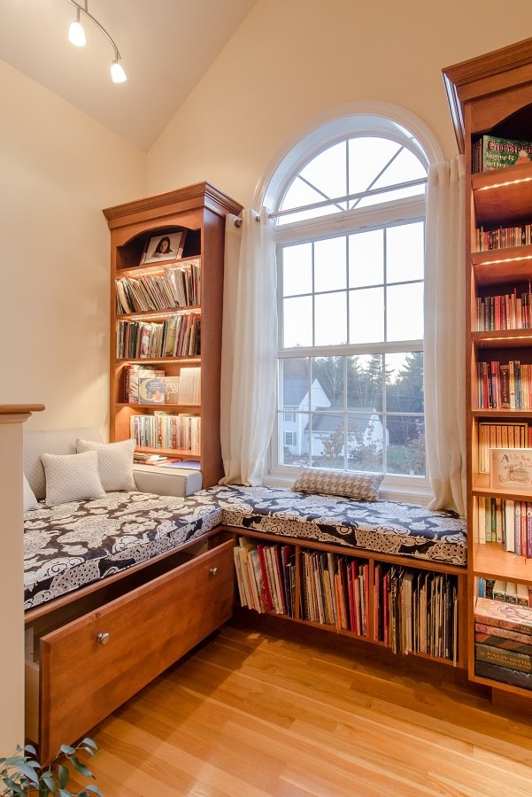 - Two bookshelves frame with window with a two large window seats perfect for curling up and reading a book.