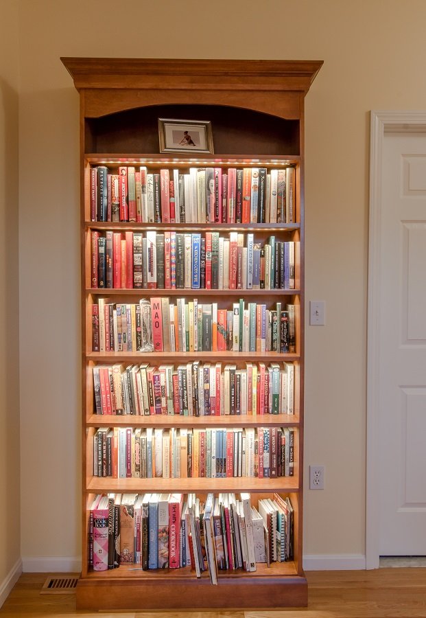 - Under cabinet rope lighting in the book shelves is a prefect way to light up the open bookshelves.