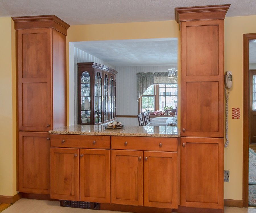 Pantry storage framing the buffet area is a great addition to this kitchen remodel in Acton MA.