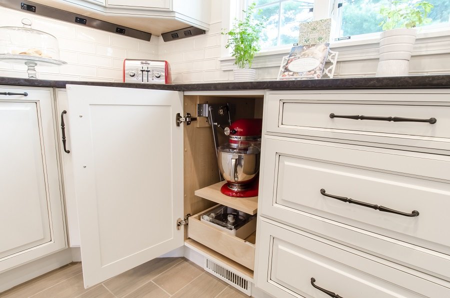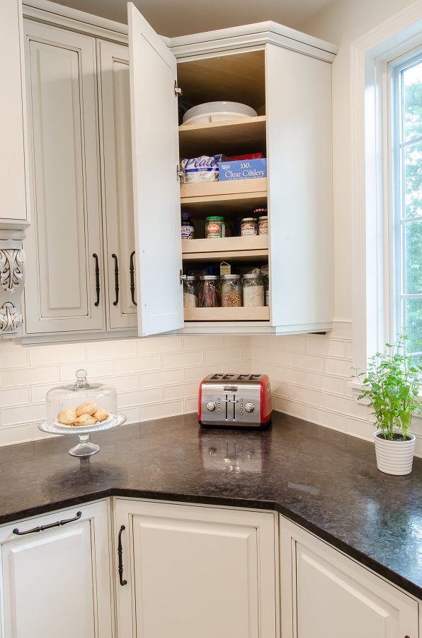 • Built in cabinetry provides a fabulous finishing touch on this kitchen remodel.