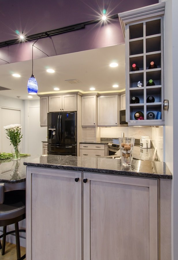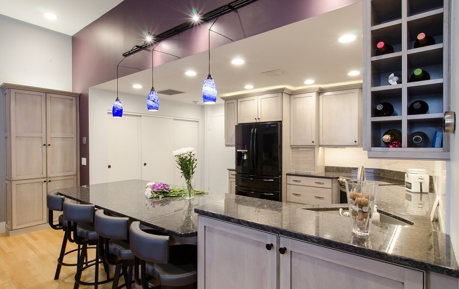 - Built in black appliances compliment the gray cabinets in this kitchen remodel Somerville MA.