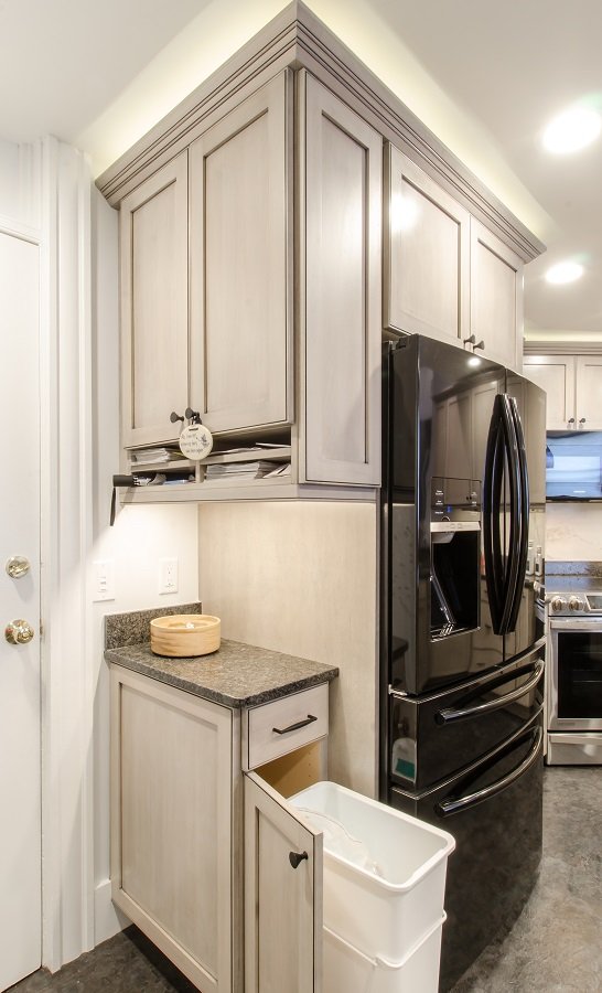 - Drawer storage added to kitchen with organization for spatulas and spices so everything has a place.