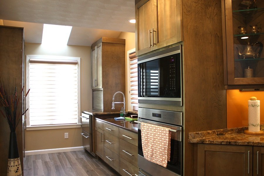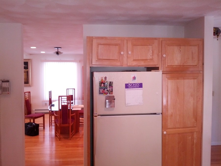 | In summary – This Stoneham Ma transformed from a poor layout with outdated cabinetry and limited counter space to a stunning space that would be any cooks dream. Moving the cooktop to the island provides plenty of countertop space for prep for more than one cook. Small glass wall cabinet provides the perfect place for display pieces without taking up too much space. Table height seating attached to the island is perfect for morning breakfast, paying the bills or just sitting around to have a cup of coffee or wine. Two sinks areas make clean up a breeze. Now this kitchen is really something special. |