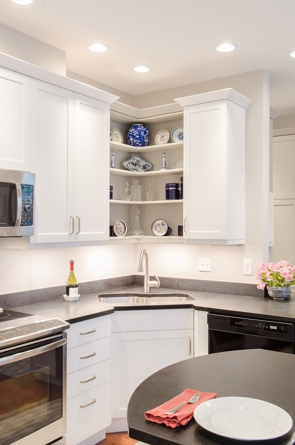 | In summary – White kitchen with light countertops and tile backsplash make this Lexington MA kitchen remodel absolutely gorgeous. Large island is a great place for additional storage as well as seating. Large sink next to the window allows for a lot of great working countertop thoughout the kitchen. There is plenty of storage in this kitchen and everything is nice and organized. This white kitchen is an amazing addition to this Lexngton MA home |